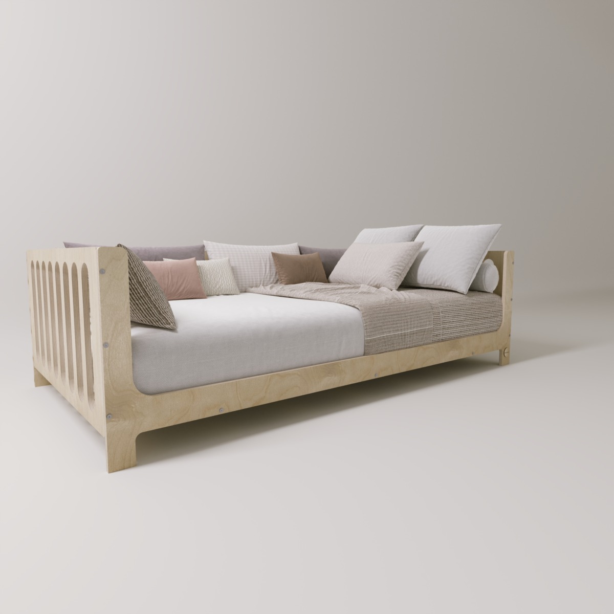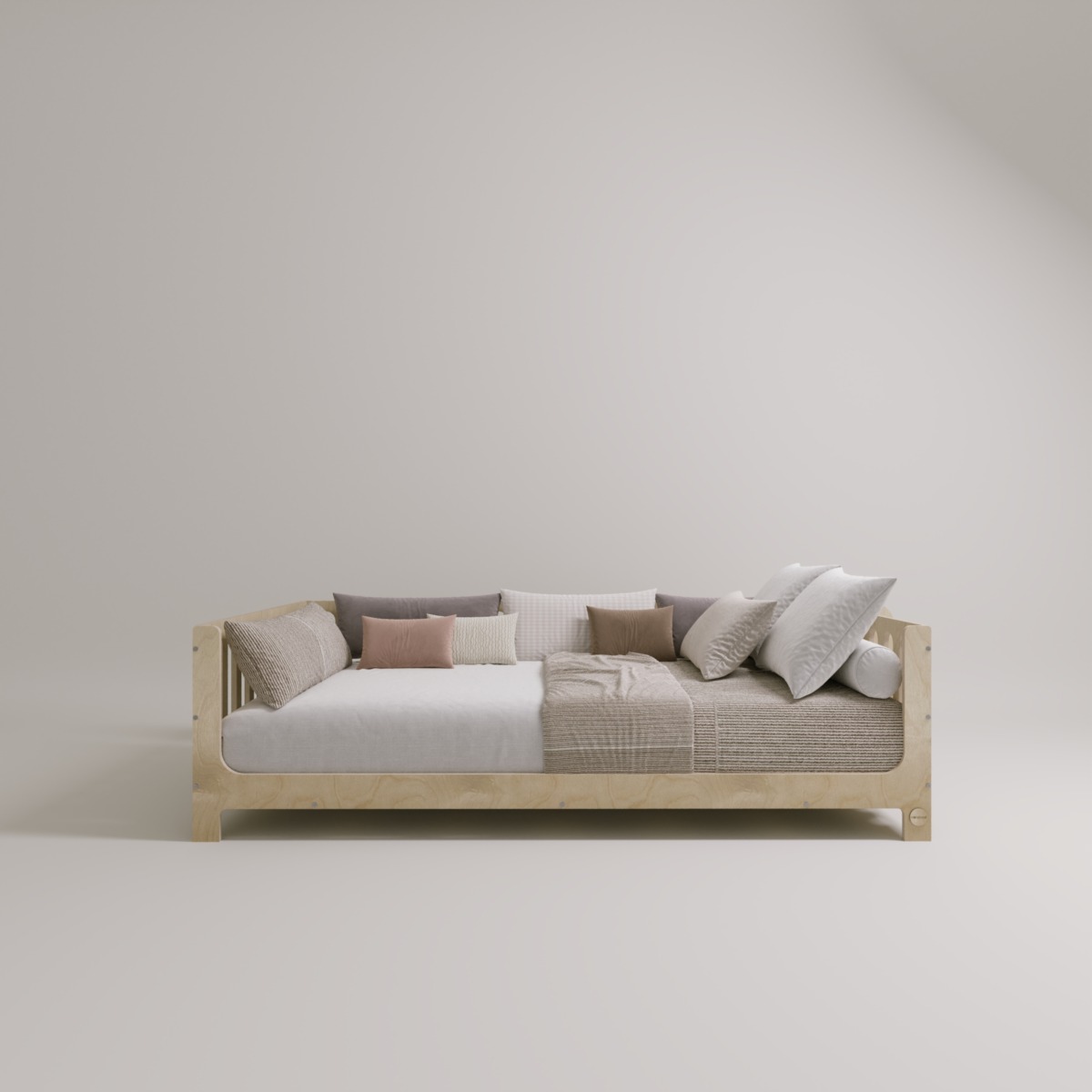 Our Montessori Bett – Alpine is expertly crafted from high-quality Birkensperrholz and crafted with intensive handwork. If no customizations are requested, it will be shipped within 5 business days.