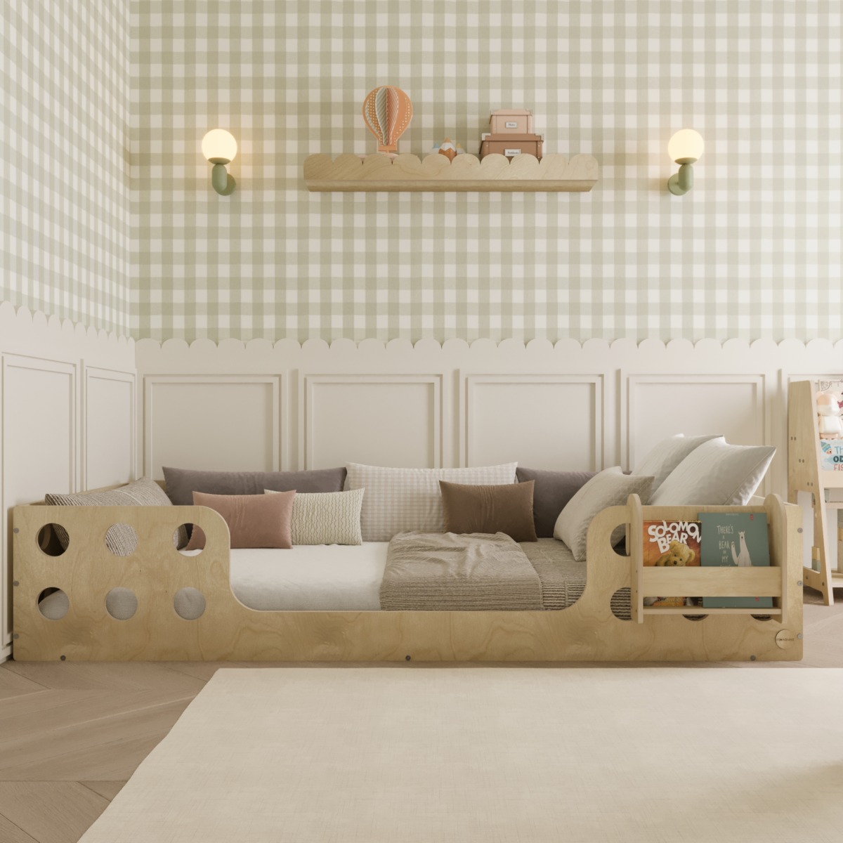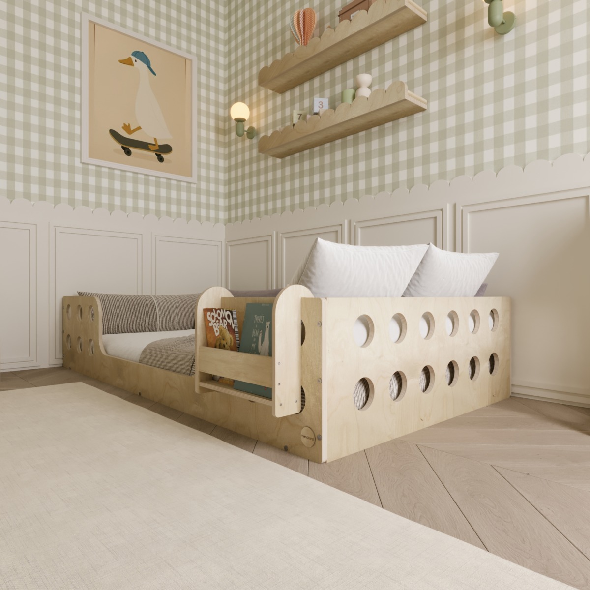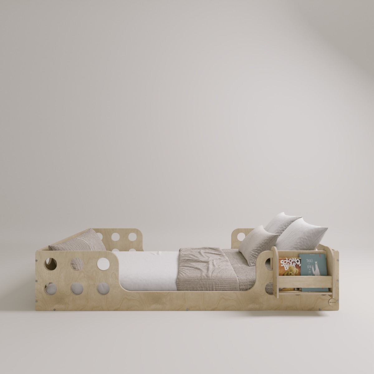 Our Montessori Bodenbett – Brook is expertly crafted from high-quality Birkensperrholz and crafted with intensive handwork. If no customizations are requested, it will be shipped within 5 business days.