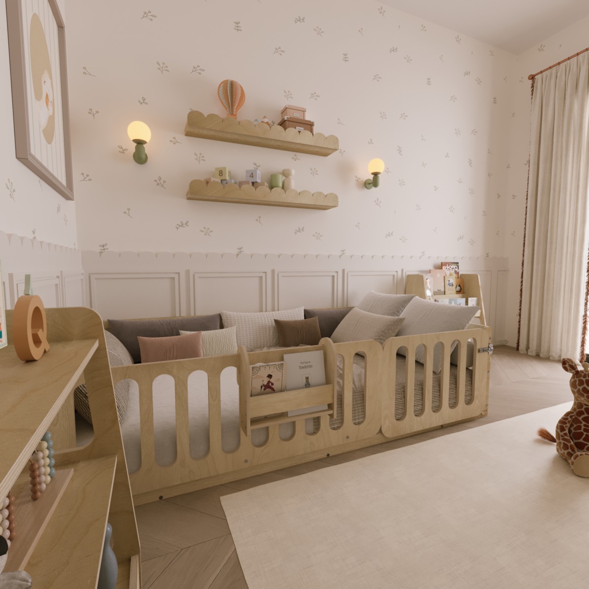 Our Montessori Bodenbett – Solen is expertly crafted from high-quality Birkensperrholz and crafted with intensive handwork. If no customizations are requested, it will be shipped within 5 business days.