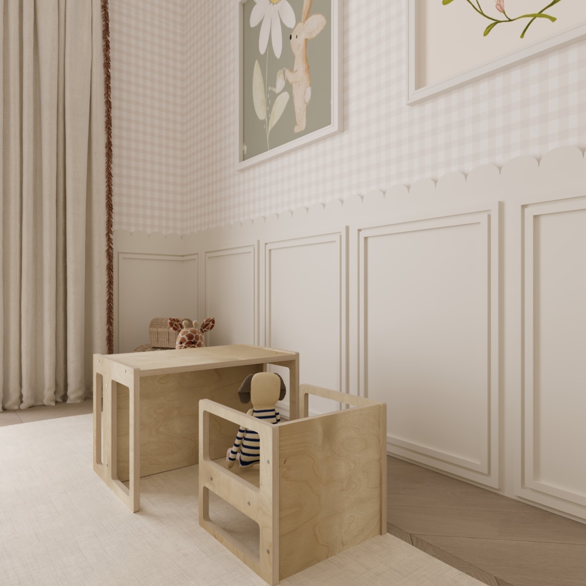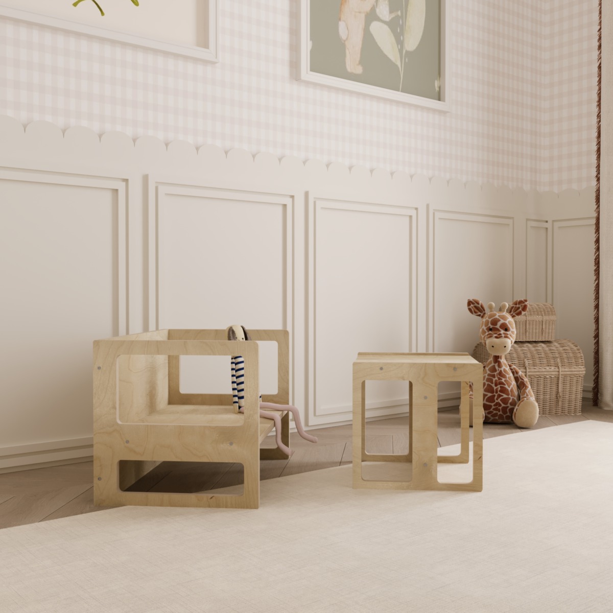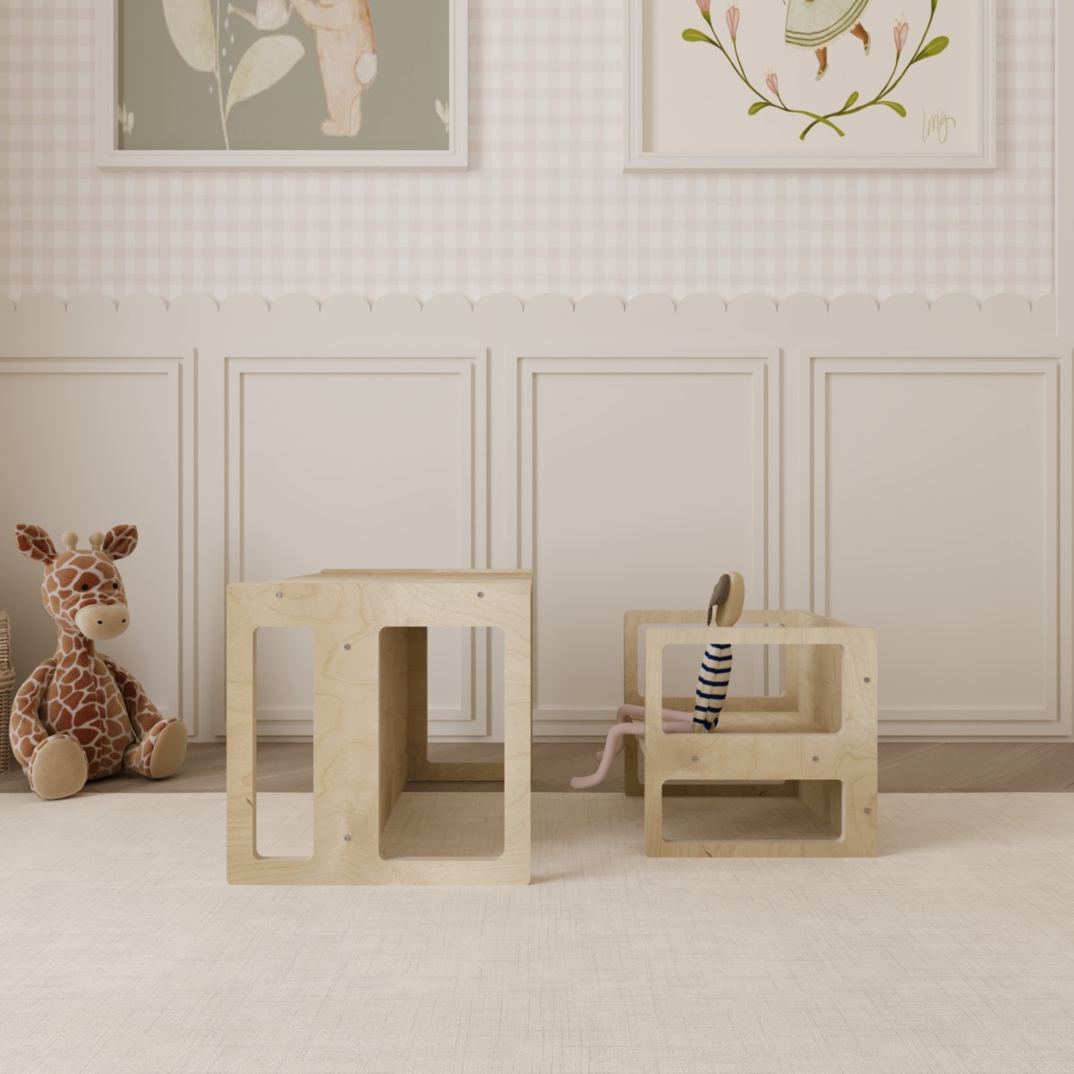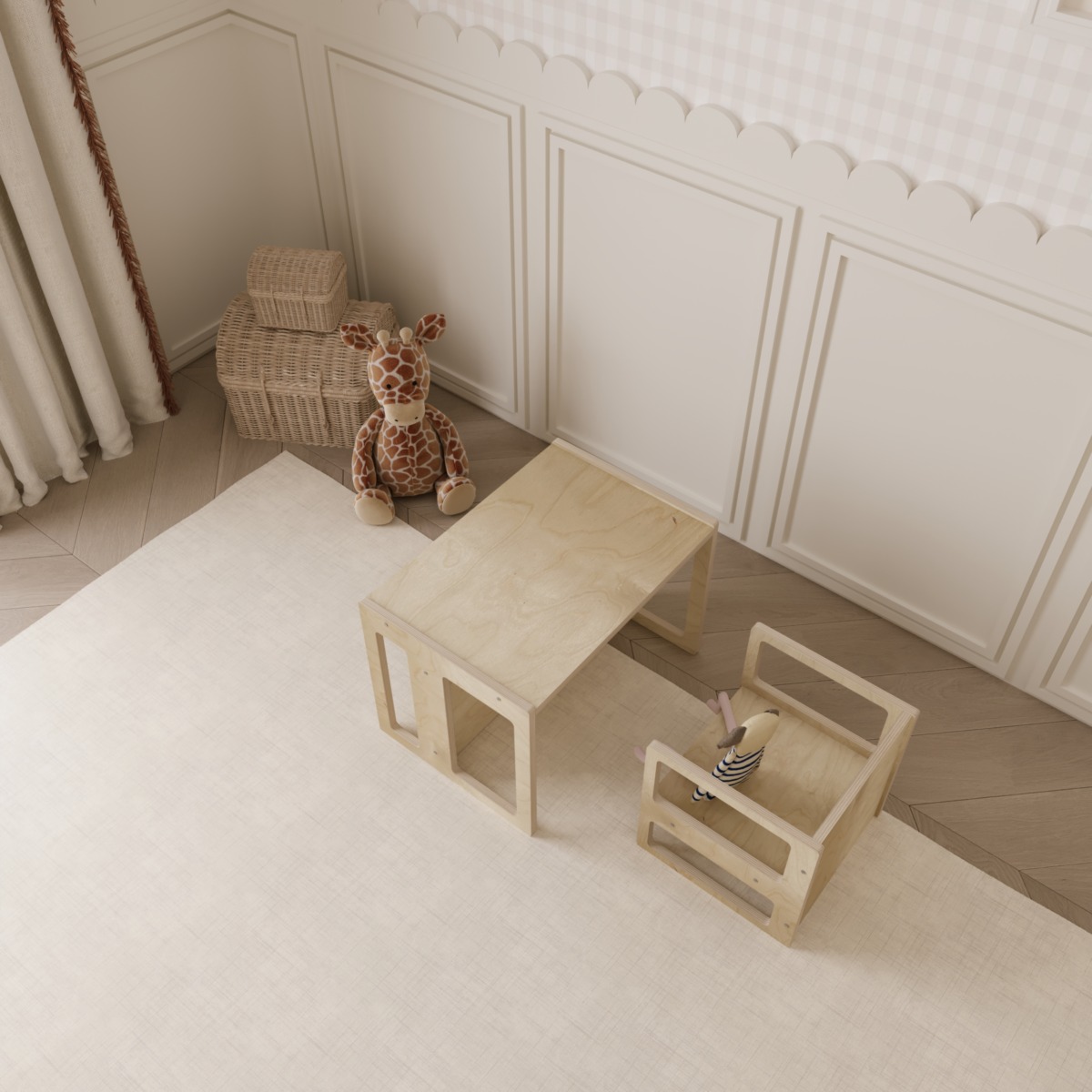 Schaffen Sie einen Ort, an dem Ihr Kind die Welt nach seinen eigenen Regeln entdecken kann. Diese Montessori-Sitzgruppe, bestehend aus einem multifunktionalen Tisch und einem passenden Stuhl, fördert die Selbstständigkeit und Kreativität von Kleinkindern. Durch das durchdachte Design lässt sich das Set vielseitig einsetzen und passt sich den Bedürfnissen Ihres Kindes beim Spielen, Malen oder Essen perfekt an.