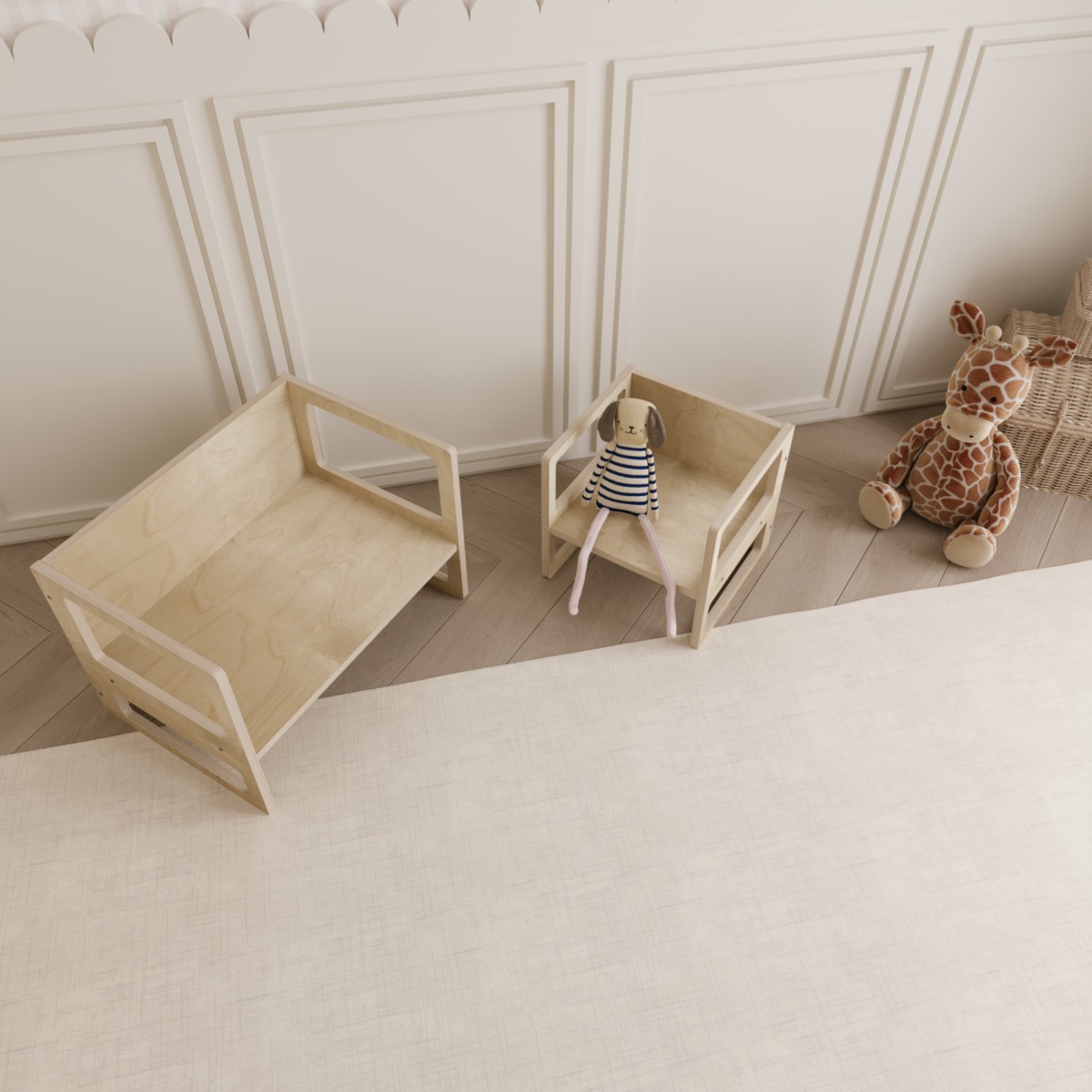 Our Montessori Kindersitzgruppe – Ligno is expertly crafted from high-quality Birkensperrholz and crafted with intensive handwork. If no customizations are requested, it will be shipped within 5 business days.