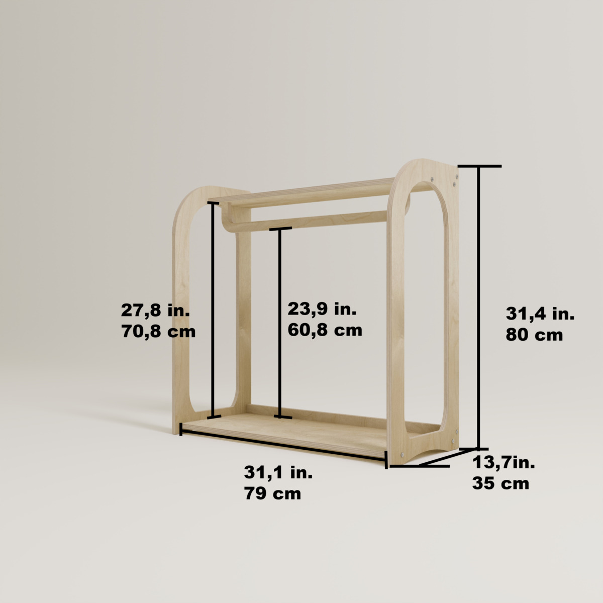 - Höhe der Kleiderstange: 60,8 cm