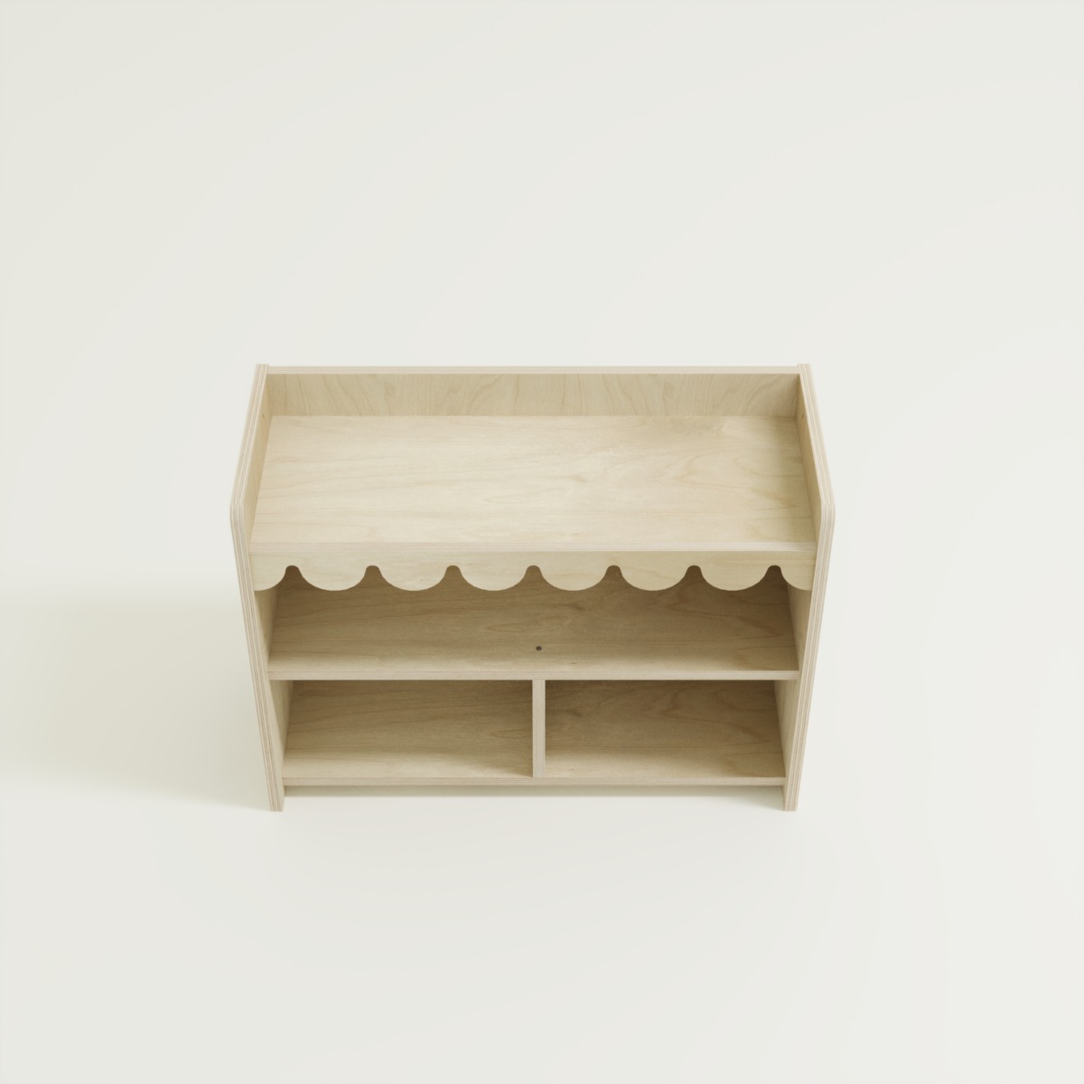 Gefertigt aus robustem Birke-Sperrholz, bietet dieses Regal hohe Stabilität bei natürlichem Aussehen. Die Oberflächen sind besonders glatt geschliffen, um eine sichere Nutzung für kleine Entdecker zu garantieren. Es ist so konzipiert, dass es die Selbstständigkeit nach dem Montessori-Prinzip fördert, indem alle Gegenstände auf Augenhöhe des Kindes platziert werden.
