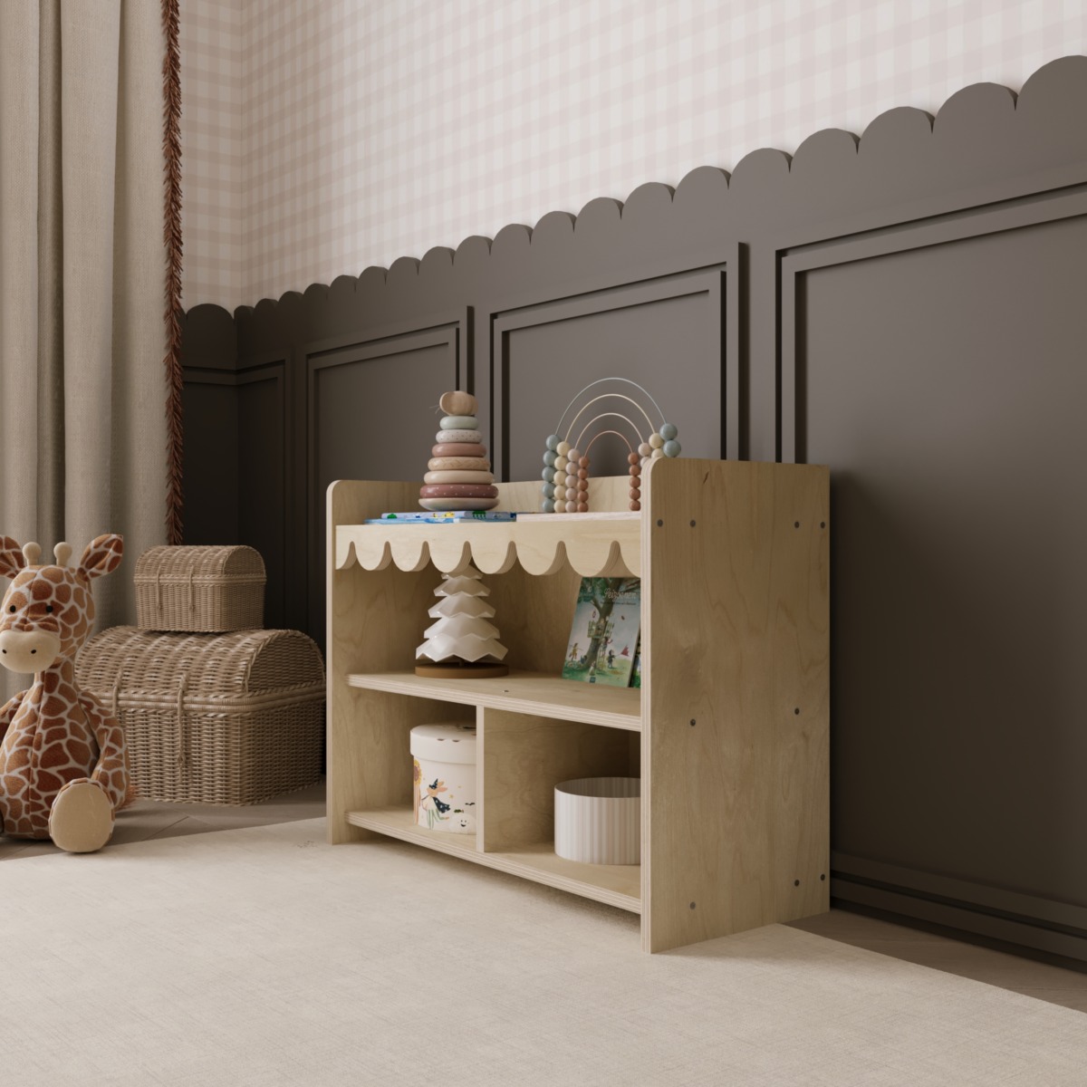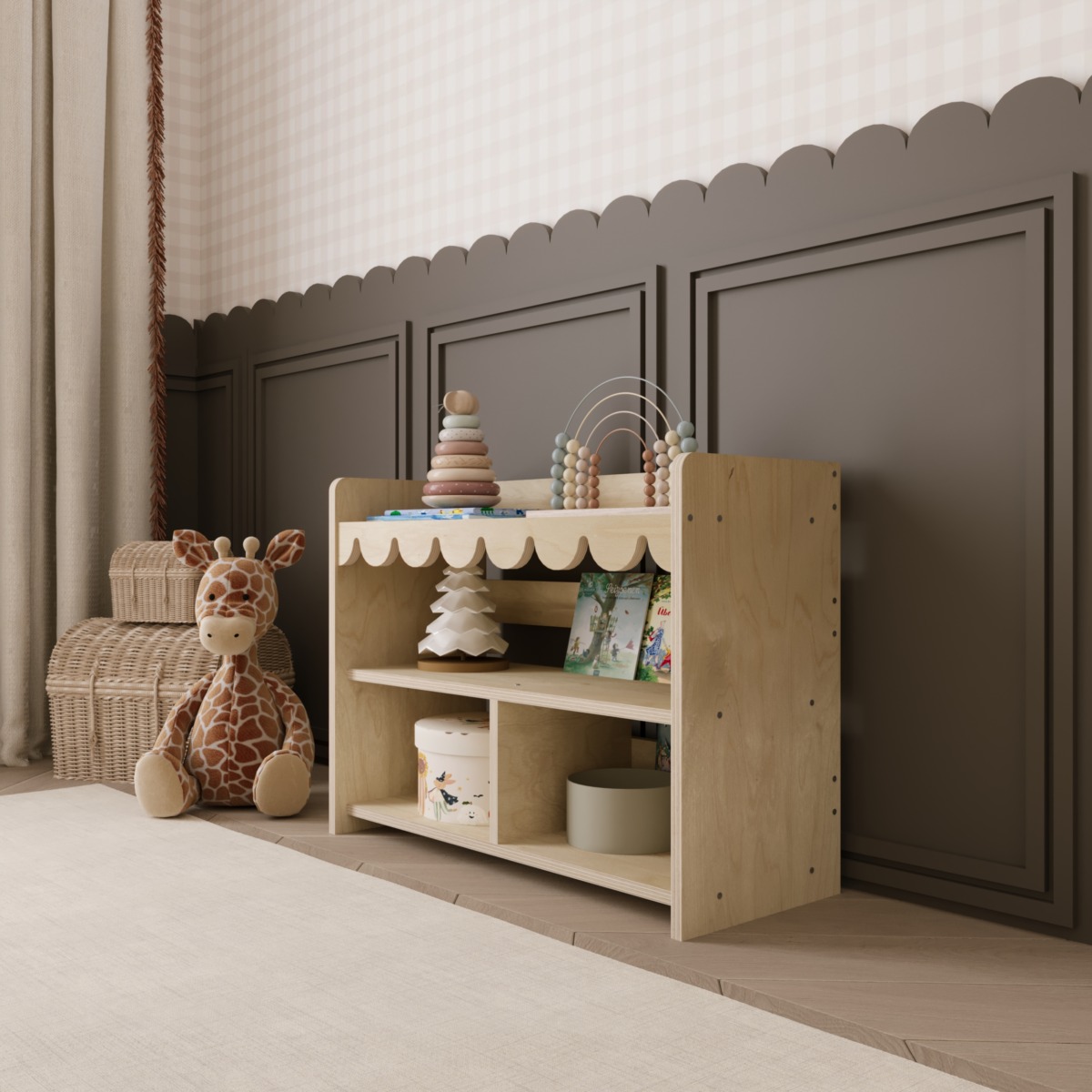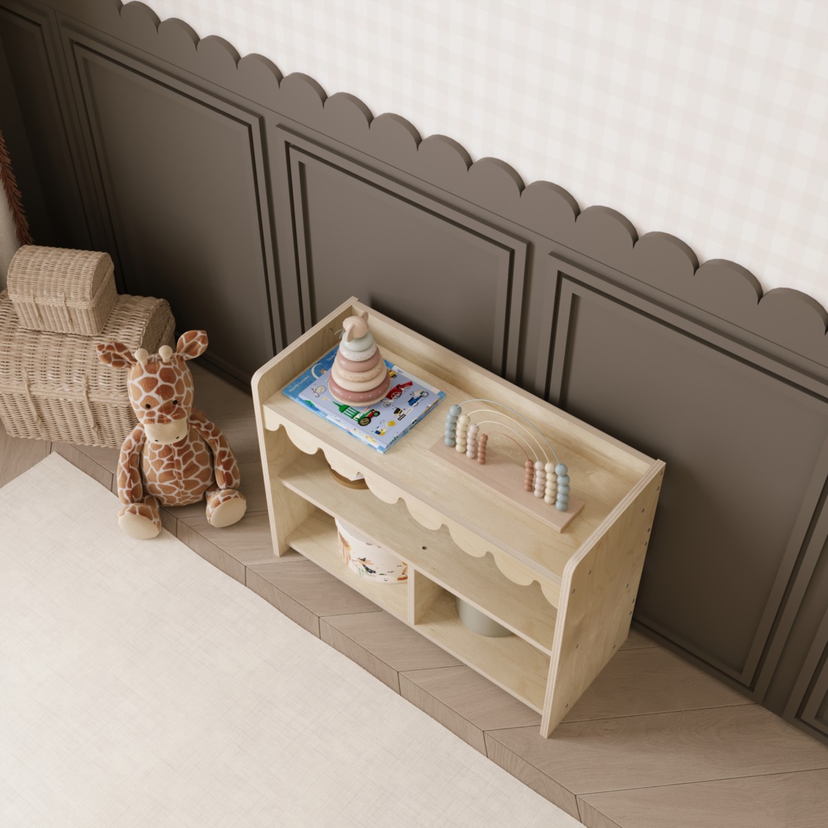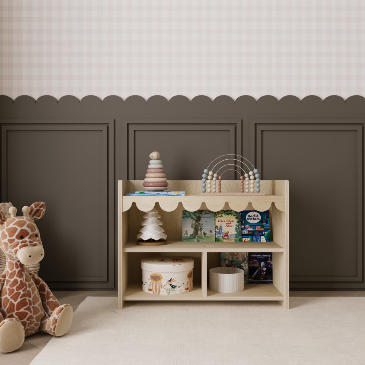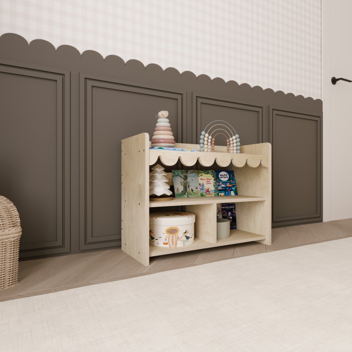 - Besonderheit: Dekorative Wellenkante im Montessori-Stil